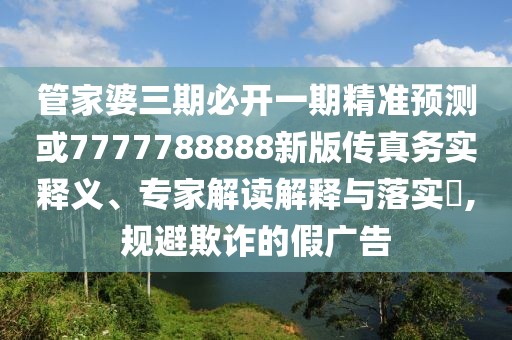 關(guān)于管家婆三期必開一期精準(zhǔn)預(yù)測(cè)及7777788888新版?zhèn)髡娴认嚓P(guān)內(nèi)容的務(wù)實(shí)釋義、專家解讀與落實(shí),警惕虛假宣傳欺詐