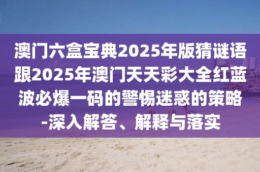澳門六盒寶典2025年版猜謎語跟2025年澳門天天彩大全紅藍波必爆一碼的深入解答、解釋與落實
