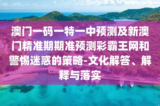 關(guān)于澳門一碼一特一中預測及新澳門精準期期準預測彩霸王網(wǎng)的文化解答、解釋與落實——警惕迷惑的策略