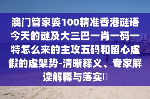 澳門管家婆100精準(zhǔn)香港謎語今天的謎及大三巴一肖一碼一特怎么來的主攻五碼:清晰釋義、專家解讀解釋與落實?