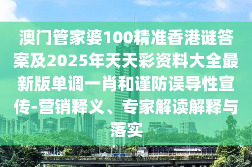 澳門管家婆100精準香港謎答案及營銷釋義解讀與落實——謹防虛假宣傳的警示