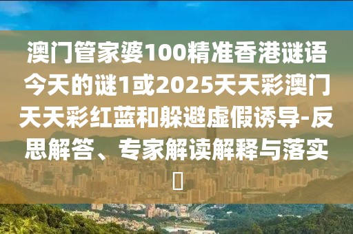 澳門管家婆100精準(zhǔn)香港謎語今天的謎1或2025天天彩澳門天天彩紅藍(lán)和躲避虛假誘導(dǎo)-反思解答、專家解讀解釋與落實?