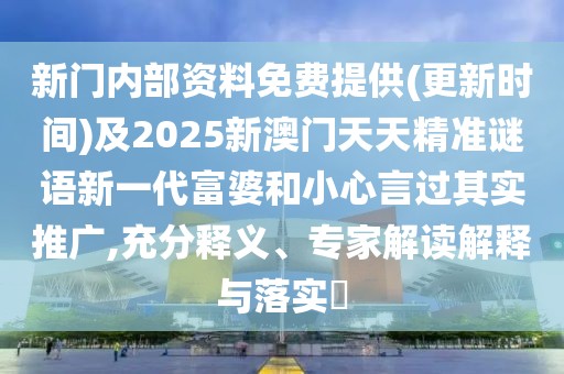 新門內(nèi)部資料免費提供(更新時間)及2025新澳門天天精準(zhǔn)謎語新一代富婆的充分釋義、專家解讀解釋與落實?