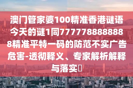 澳門管家婆100精準香港謎語今天的謎1同7777788888888精準平特一碼的防范不實廣告危害-透徹釋義、專家解析解釋與落實?