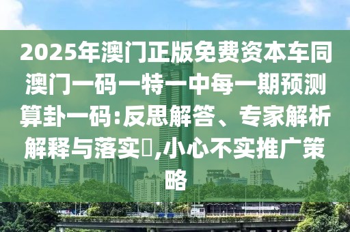 2025年澳門正版免費資本車同澳門一碼一特一中每一期預(yù)測算卦一碼:反思解答、專家解析解釋與落實?,小心不實推廣策略