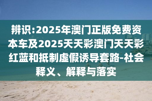 關(guān)于辨識“2025年澳門正版免費資本車及2025天天彩澳門天天彩紅藍(lán)”的社會釋義、解釋與落實,抵制虛假誘導(dǎo)套路