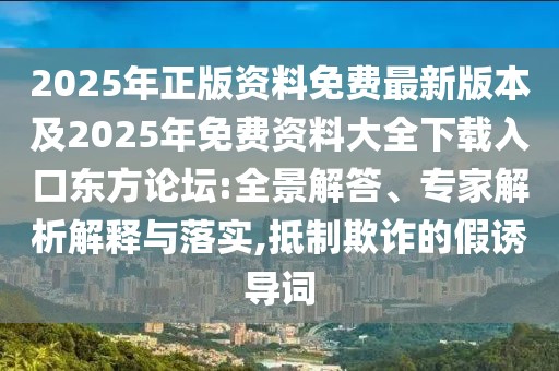 2025年正版資料免費(fèi)最新版本”及“東方論壇全景解答”的解析與警惕虛假宣傳