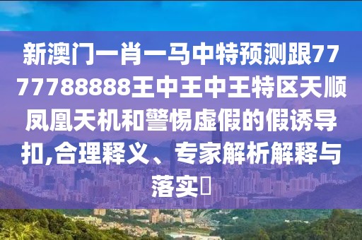 關(guān)于關(guān)鍵詞“新澳門一肖一馬中特預(yù)測”、“7777788888王中王中王特區(qū)天順鳳凰天機(jī)”以及虛假宣傳的解析與警惕