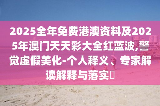 2025全年免費港澳資料及2025年澳門天天彩大全紅藍波:個人釋義、專家解讀解釋與落實?
