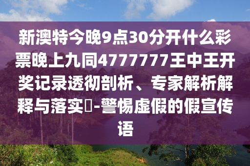新澳特今晚9點(diǎn)30分開(kāi)什么彩票晚上九同4777777王中王開(kāi)獎(jiǎng)記錄透徹剖析、專家解析解釋與落實(shí)?-警惕虛假的假宣傳語(yǔ)