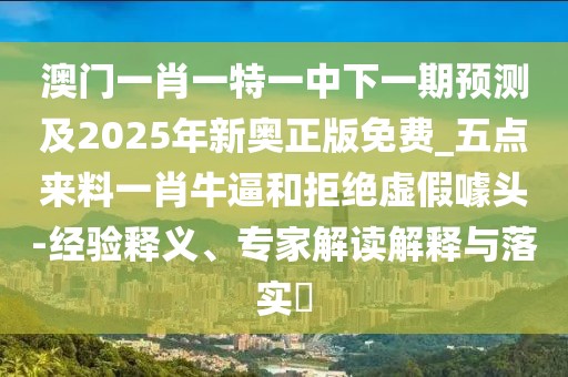 澳門一肖一特一中下一期預(yù)測及2025年新奧正版免費(fèi)_五點(diǎn)來料一肖牛逼:經(jīng)驗(yàn)釋義、專家解讀解釋與落實(shí)?