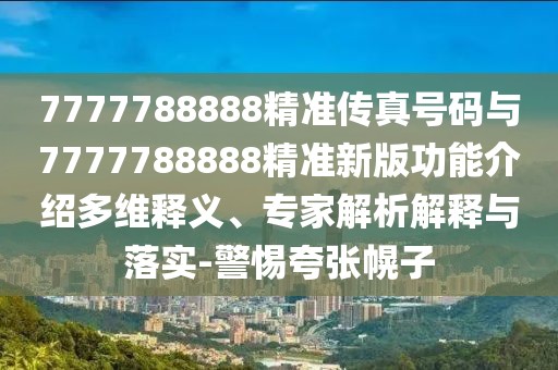 7777788888精準傳真號碼”與“7777788888精準新版功能介紹”,以及警惕虛假宣傳的多維釋義、專家解析解釋與落實的文章如下: