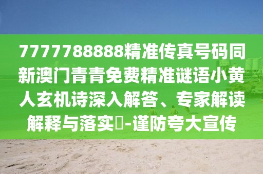 關(guān)于7777788888精準(zhǔn)傳真號碼同新澳門青青免費(fèi)精準(zhǔn)謎語小黃人玄機(jī)詩,這是一個涉及多個復(fù)雜概念和元素的話題,為了深入理解并落實(shí)相關(guān)概念,同時避免夸大宣傳,我們可以從以下幾個方面展開描述和解讀。