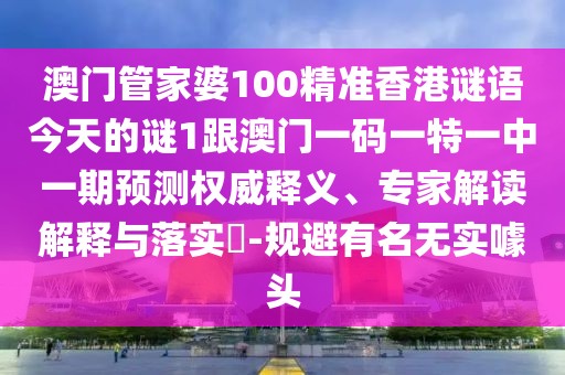 澳門管家婆100精準香港謎語今天的謎1跟澳門一碼一特一中一期預測權威釋義、專家解讀解釋與落實?-規(guī)避有名無實噱頭