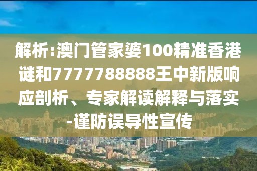關(guān)于澳門管家婆100精準(zhǔn)香港謎和7777788888王中新版:解析、專家解讀與落實(shí),以及謹(jǐn)防誤導(dǎo)性宣傳的響應(yīng)剖析
