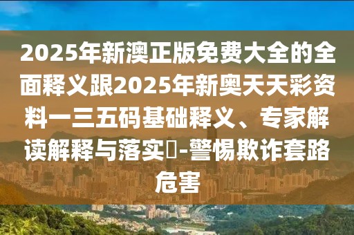 2025年新澳正版免費(fèi)大全”的全面釋義與對(duì)“2025年新奧天天彩資料一三五碼”的警惕欺詐套路危害