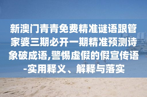 關(guān)于新澳門青青免費精準謎語與管家婆三期必開一期精準預(yù)測詩象破成語的相關(guān)概念,涉及到博彩、預(yù)測和成語等多個領(lǐng)域,需要我們從多個角度進行解讀和解釋,以下是對這些概念的實用釋義、解釋與落實,并提醒用戶警惕虛假的宣傳語。
