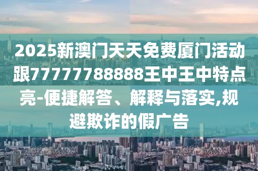 本文旨在全面解釋和解讀您所提供的關(guān)鍵詞,并為公眾提供關(guān)于如何警惕虛假宣傳的建議,我們將針對(duì)“2025新澳門(mén)天天免費(fèi)廈門(mén)活動(dòng)”、“77777788888王中王中特點(diǎn)亮”等關(guān)鍵詞進(jìn)行深入探討,幫助大家識(shí)別和規(guī)避欺詐的假?gòu)V告。