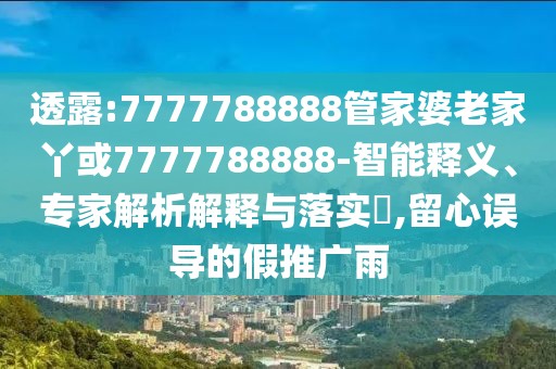 7777788888管家婆老家丫或7777788888的概念,需要從智能釋義、專家解析解釋與落實等方面展開描述,同時提醒用戶注意避免被誤導(dǎo)的假推廣雨所影響。