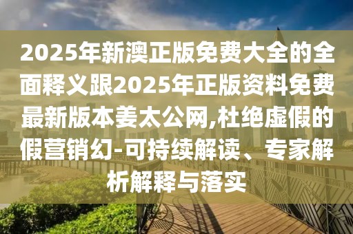 2025年新澳正版免費大全的全面釋義”與“杜絕虛假假營銷幻”的解讀與落實,以及專家解析與解釋——以姜太公網(wǎng)提供的“2025年正版資料免費最新版本”為例