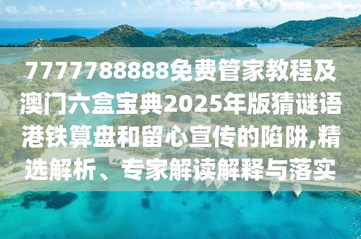 7777788888免費管家教程及澳門六盒寶典2025年版猜謎語港鐵算盤的精選解析、專家解讀解釋與落實