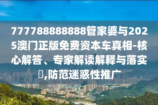 777788888888管家婆與2025澳門正版免費資本車真相”的核心解答、專家解讀、解釋與落實,以及防范迷惑性推廣的警示文章