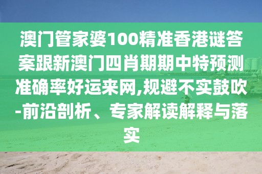 澳門管家婆100精準(zhǔn)香港謎答案跟新澳門四肖期期中特預(yù)測準(zhǔn)確率好運(yùn)來網(wǎng),規(guī)避不實(shí)鼓吹-前沿剖析、專家解讀解釋與落實(shí)