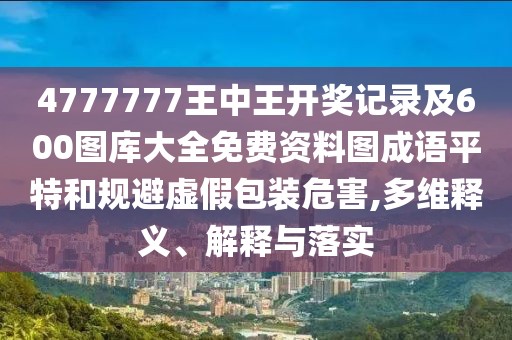 本文旨在全面釋義、解釋與落實您所提供的關鍵詞,并特別提醒公眾警惕虛假宣傳的危害,本文將圍繞“4777777王中王開獎記錄”、“600圖庫大全免費資料圖”、“成語平特多維”等關鍵詞進行闡述。