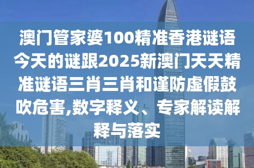 澳門管家婆100精準(zhǔn)香港謎語今天的謎跟2025新澳門天天精準(zhǔn)謎語三肖三肖的數(shù)字釋義、專家解讀解釋與落實(shí)