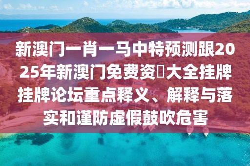關(guān)于新澳門一肖一馬中特預測和2025年新澳門免費資料的解釋與落實,以及謹防虛假宣傳的危害