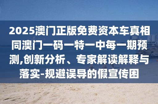 2025澳門正版免費資本車真相同澳門一碼一特一中每一期預測,創(chuàng)新分析、專家解讀解釋與落實-規(guī)避誤導的假宣傳困