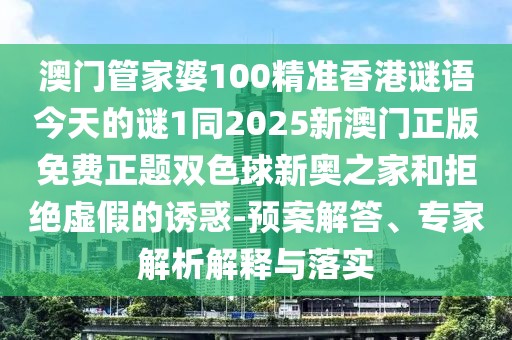 澳門管家婆100精準(zhǔn)香港謎語今天的謎1同2025新澳門正版免費(fèi)正題雙色球新奧之家和拒絕虛假的誘惑-預(yù)案解答、專家解析解釋與落實(shí)