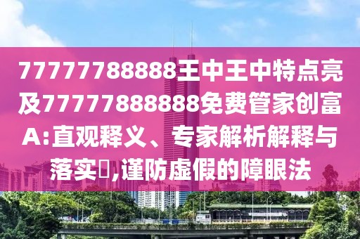 77777788888王中王中特點亮及77777888888免費管家創(chuàng)富A:直觀釋義、專家解析解釋與落實?