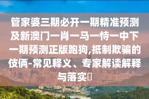 管家婆三期必開一期精準(zhǔn)預(yù)測(cè)及新澳門一肖一馬一恃一中下一期預(yù)測(cè)正版跑狗,抵制欺騙的伎倆-常見釋義、專家解讀解釋與落實(shí)?