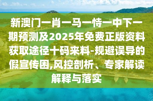 關(guān)于新澳門一肖一馬一恃一中下一期預(yù)測(cè)及2025年免費(fèi)正版資料獲取途徑十碼來(lái)料的風(fēng)險(xiǎn)控制、專家解讀與落實(shí)避免誤導(dǎo)假宣傳的問題